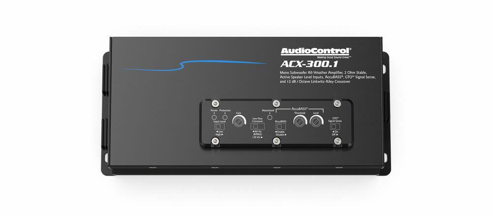 AudioControl’s ACX-300.1 all-weather monoblock amplifier delivers honest power levels to the sound system in your boat, utv, motorcycle, and more. The ACX-300.1 will ensure your open-air speakers and subwoofers deliver plenty of punch and clarity, all day long. Installer-friendly, heavy gauge quick-connect wiring makes installation quick and painless, making the ACX-300.1 all-weather monoblock amplifier the perfect solution for your next adventure.
