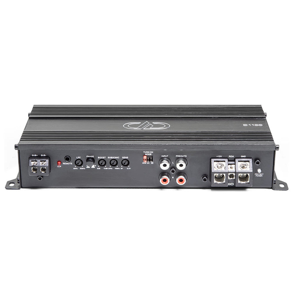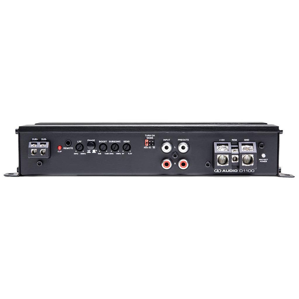 D Series amplifiers are compact amplifiers with full size features. The D1100 is a 1 ohm stable monoblock subwoofer amplifier with a total output power of 1100 watts. Precision tuning is made easy with variable bandpass crossovers and LED clipping indicator. Installation is made easier with single side controls and connections, and auto turn-on options. For boat, bike, and ATV applications conformal coated internal circuitry and corrosion proof switches offer increased moisture resistance. Even though the D Series amplifiers are very compact they still employ set screw power and speaker terminals, discrete output sections, and heavy duty anodized aluminum heatsinks. This ensures power management is proper from input to output, increasing both in-use stability and long term durability.