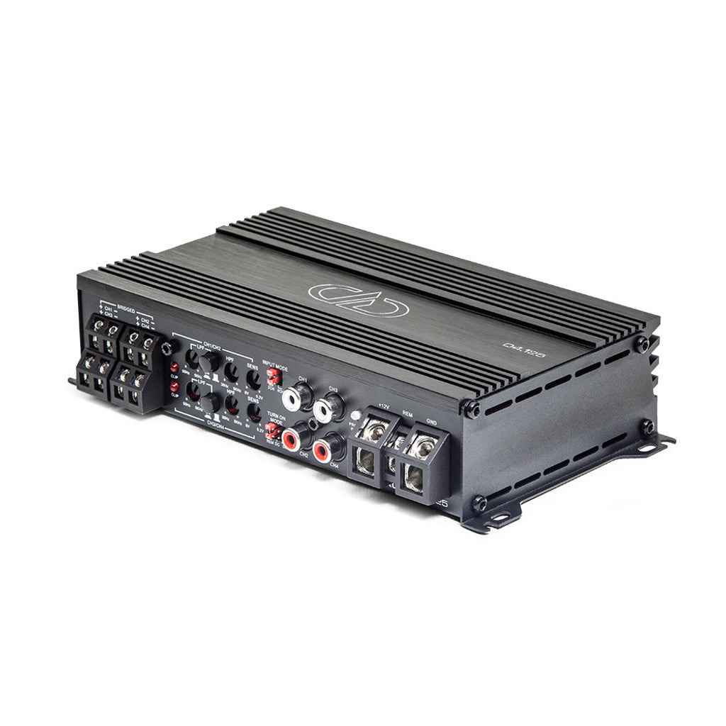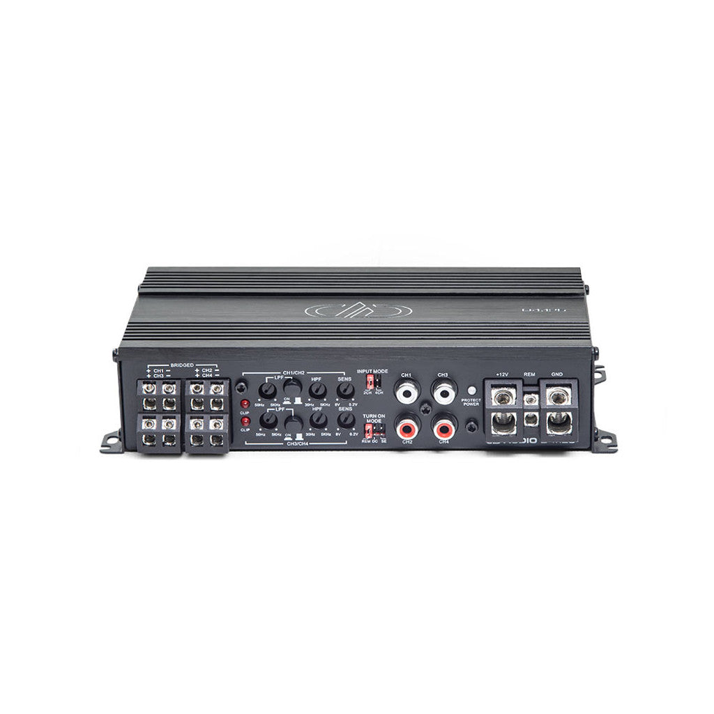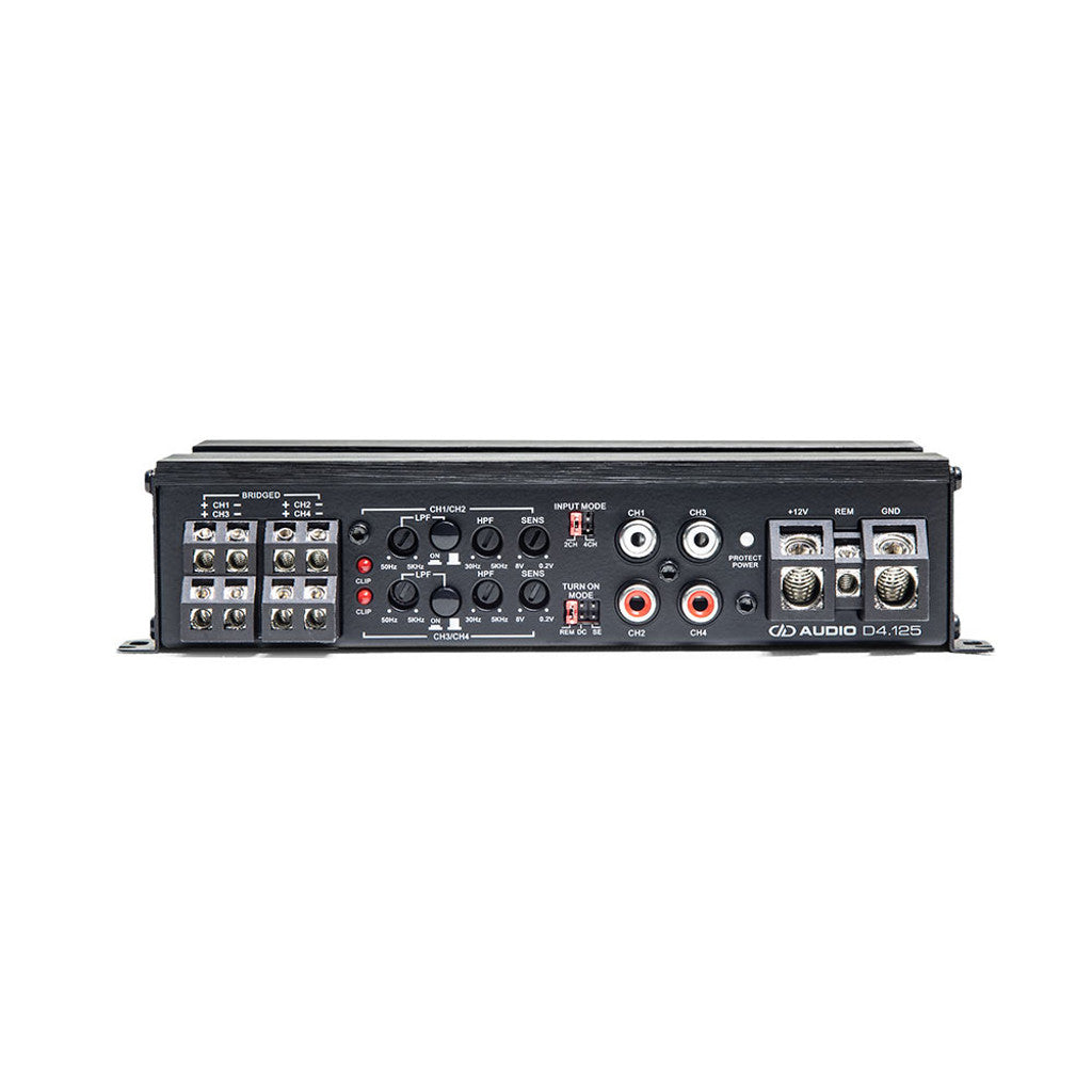 In many of today’s installs, wattage per square inch is a deciding factor on what amplifier gets the job. For the D4.125, DD’s engineers were able to take the existing D4.100a’s compact chassis, which is only 7” x 4” x 1.7”, and increase the total output by 20%. The D4.125 can cleanly produce 200 watts per channel for a staggering 800 watts of total power. Beyond its amazing power to size ratio this amp is packed with features not normally seen on amplifiers in this size and price category.