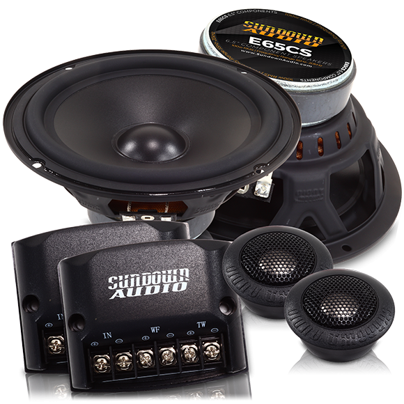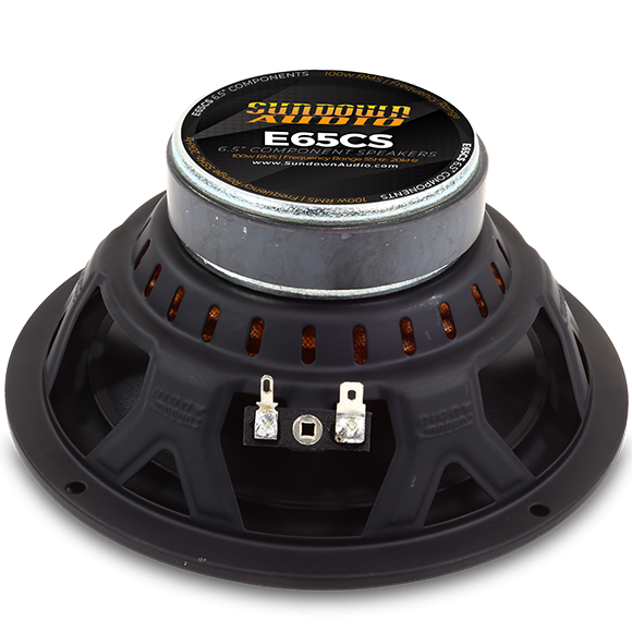The Sundown Audio E series coaxial / component speaker line was designed to present the absolute best value for our customers working on a budget. We started with custom tooled and vented stamped frames on each and every mid-range to ensure longevity, excellent voice coil cooling, and great looks. This is mated to a custom designed, very linear motor structure which drives the extremely smooth sounding poly cone. The front of each driver is finished with a well damped rubber surround and a rubber sealant ring around the tweeter stalk (for weather and dust resistance as well as the air-pump effect). The E series component utilizes a titanium dome tweeter for a more “sharp” sound than the SA series but not to an excessive level – the tweeter is well damped at the edge.