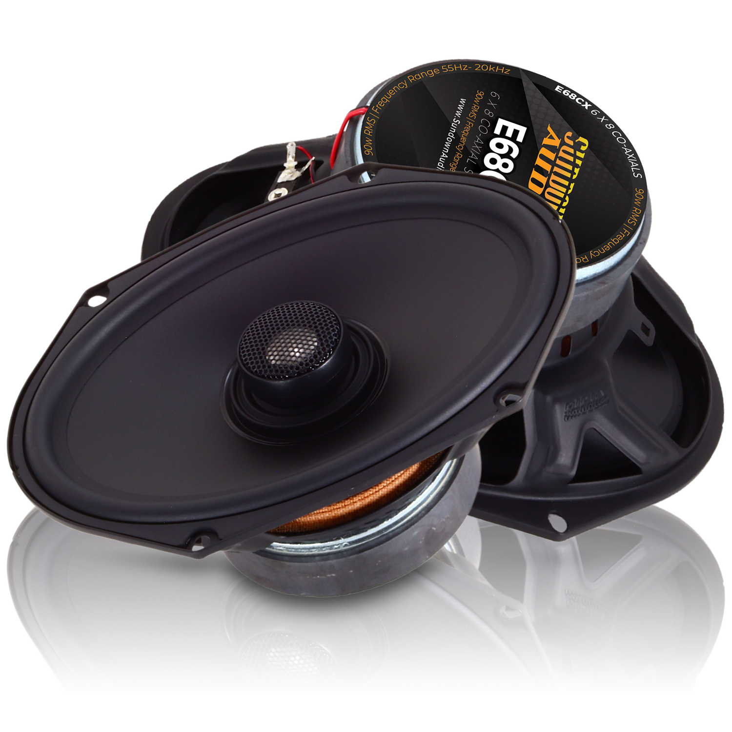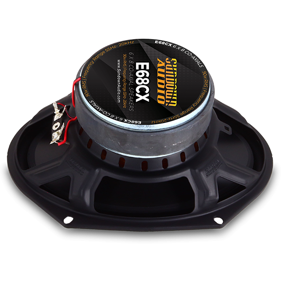 The Sundown Audio E series coaxial / component speaker line was designed to present the absolute best value for our customers working on a budget. We started with custom tooled and vented stamped frames on each and every mid-range to ensure longevity, excellent voice coil cooling, and great looks. This is mated to a custom designed, very linear motor structure which drives the extremely smooth sounding poly cone. The front of each driver is finished with a well damped rubber surround and a rubber sealant ring around the tweeter stalk (for weather and dust resistance as well as the air-pump effect). The E series component utilizes a titanium dome tweeter for a more “sharp” sound than the SA series but not to an excessive level – the tweeter is well damped at the edge.