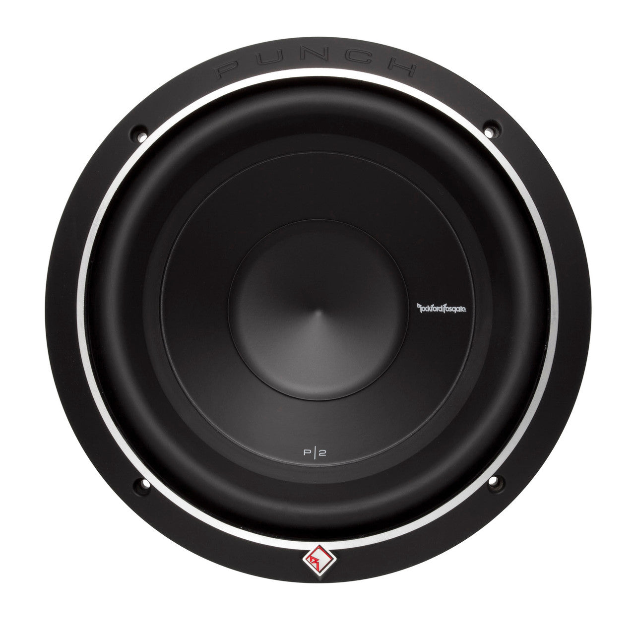 Rockford Fosgate has always been known as "The PUNCH" and the P2 10" subwoofer certainly continues with the tradition. Kevlar fiber reinforced paper cones deliver bass impact you can feel along with VAST technology to increase surface cone area up to 25%. The P2 subwoofers perform best in standard sealed and vented enclosures. Includes diamond cut cast aluminum trim ring. Optional grille insert available.