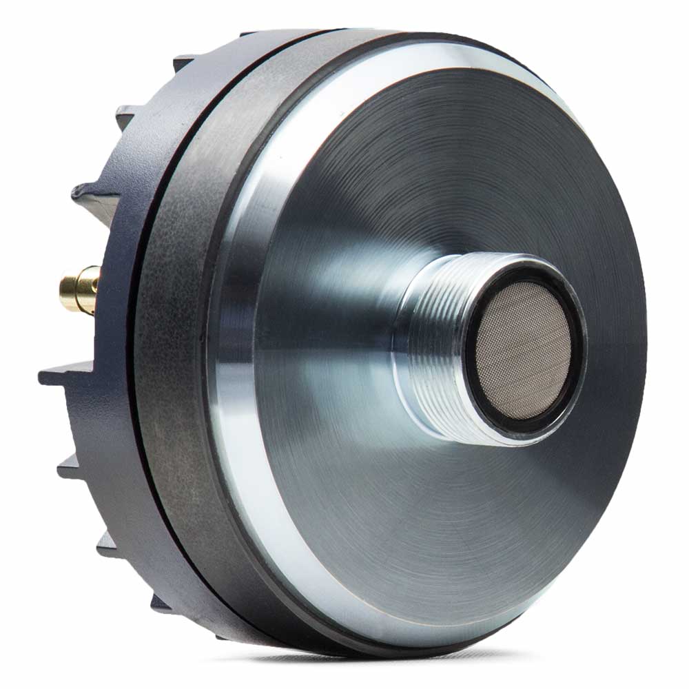 The VO-CT compression tweeters are designed to thread into our VO-W woofers for coaxial applications or to be used with a standard PA style compression horn. These drivers cover the frequency range from where our VO mid-range and woofers leave off to the frequencies that send dogs running for cover. The motor uses CnC machined parts resulting in a close tolerance, high magnetic strength motor design. The diaphragm is a highly rigid, pressed titanium alloy connected to a high-temperature voice coil. The VO-CT compression tweeters come with an in-line 12dB/oct crossover. Plug and play high output has never been so good and so easy.